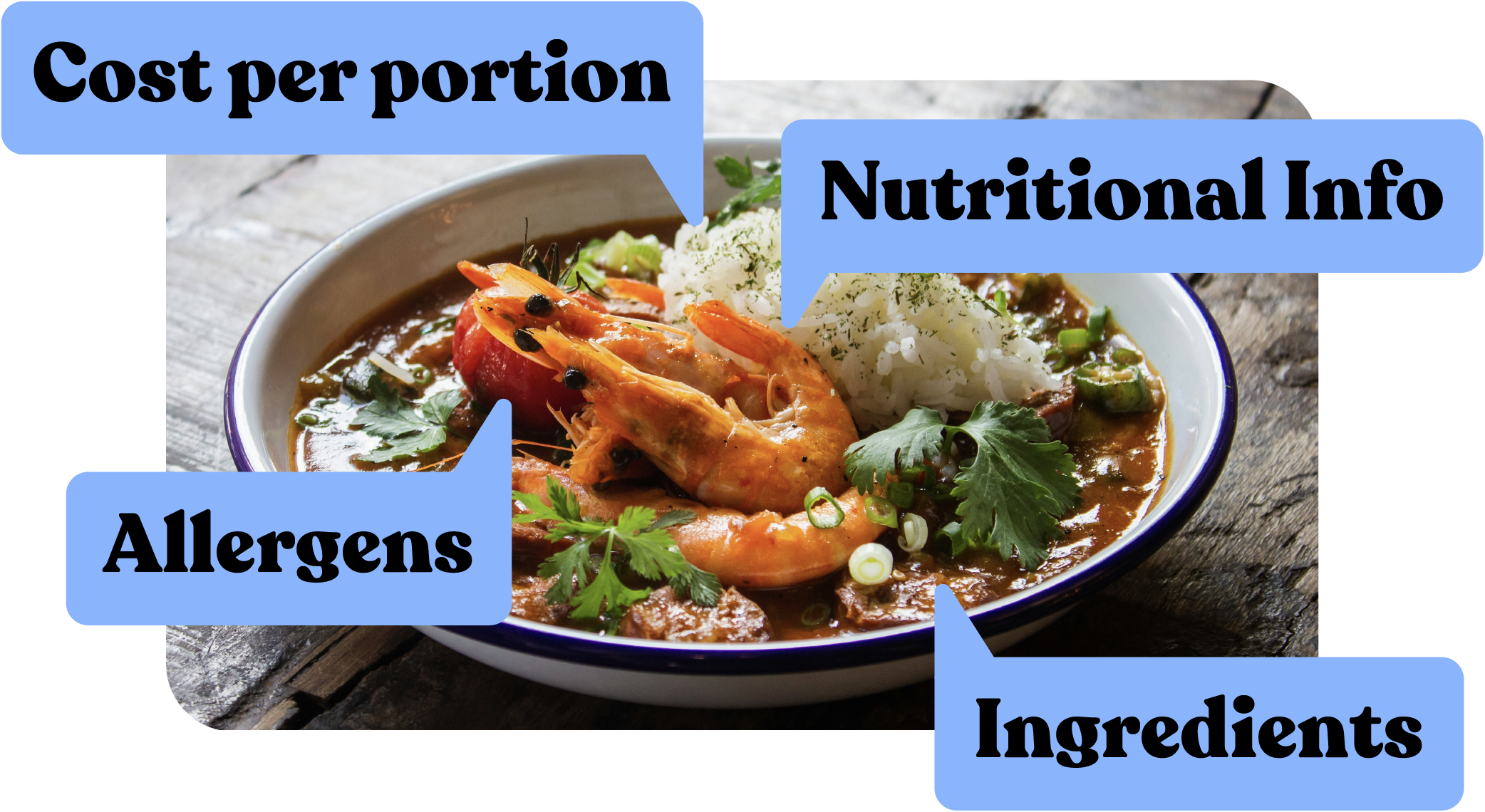 Automate menu management from a cost, allergen, nutrition and ingredient labelling perspective.